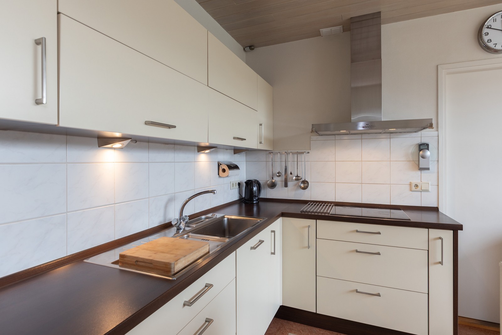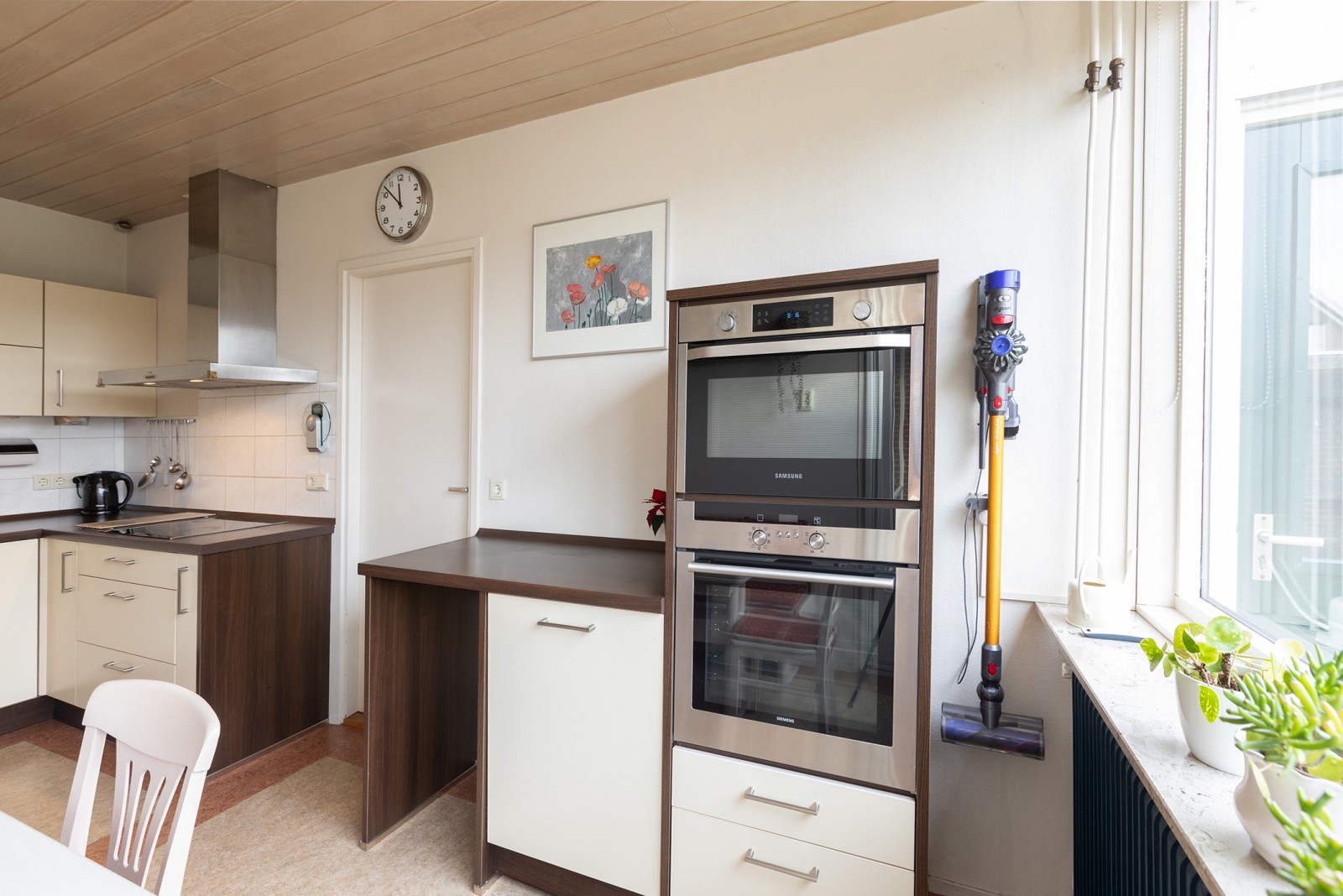 Entree/hal met bordestrap, toegang tot de provisiekelder en een toilet met wandcloset en fontein. De lichte doorzonwoonkamer is voorzien van een elektrische kachel met schouw. De uitgebouwde woonkeuken biedt een eethoek en een inbouwkeuken met een inductiekookplaat, afzuigkap, magnetron (2024), oven en vaatwasser. De keuken biedt directe toegang tot het terras. Daarnaast is er een inpandig bereikbare garage met cv-opstelling, aansluitingen voor wasmachine en wasdroger en een keukenblok met warm en koud water. Aansluitend bevindt zich een kantoorruimte die eveneens toegang geeft tot het terras.