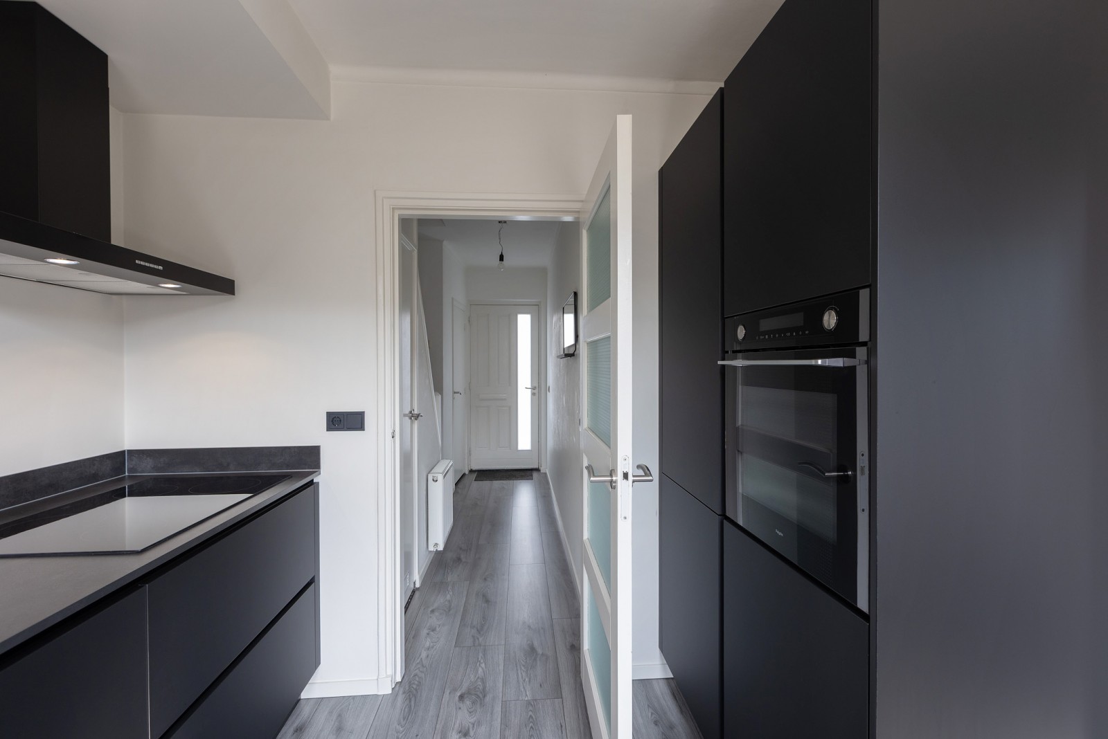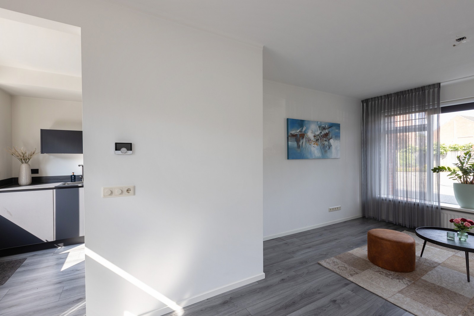 Kom binnen in de hal met trapopgang, een toilet met wandcloset en fontein en een praktische trapkast met een aansluiting voor de wasmachine. De halfopen, moderne keuken uit 2022 is een echte eyecatcher en compleet uitgerust met een inductiekookplaat, afzuigkap, vaatwasser, combi-oven, koelkast en vriezer. Vanuit de keuken stap je zo het terras op. De woonkamer is heerlijk licht dankzij de grote raampartij en beschikt over airconditioning en dubbele tuindeuren naar het terras.
