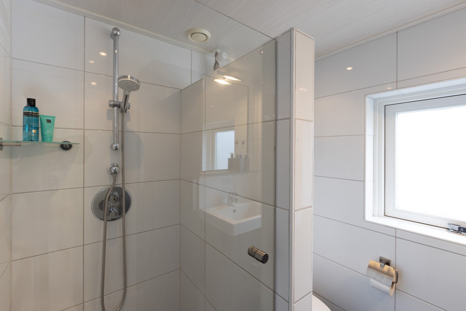 Op de overloop vind je drie slaapkamers, waarvan één met een balkon. De badkamer is voorzien van een douche, wandcloset, wastafelmeubel, comfortabele vloerverwarming en een ventilator.