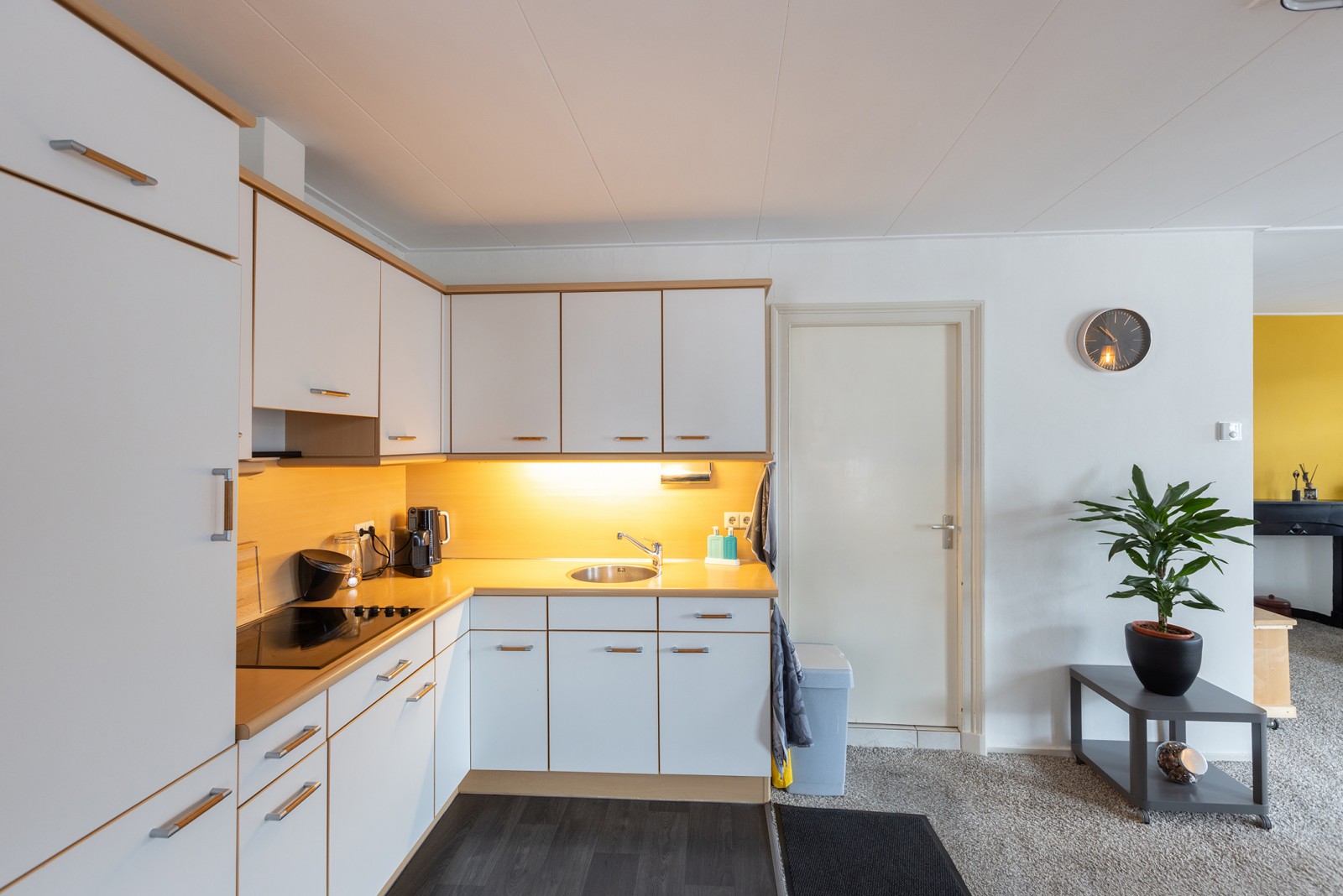Middels de overdekte entree is de royale winkelruimte te bereiken. Vanuit de winkelruimte is de pantry met keukenblok en toilet te bereiken. Notenboomstraat 50a