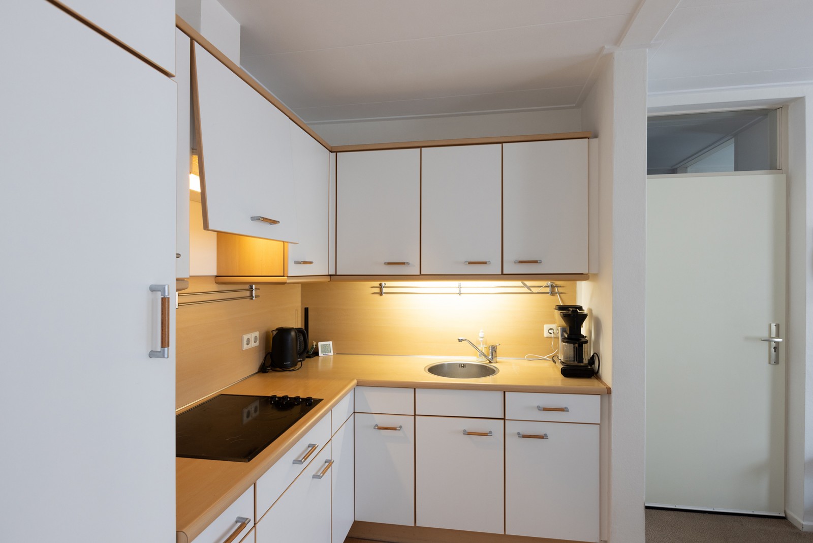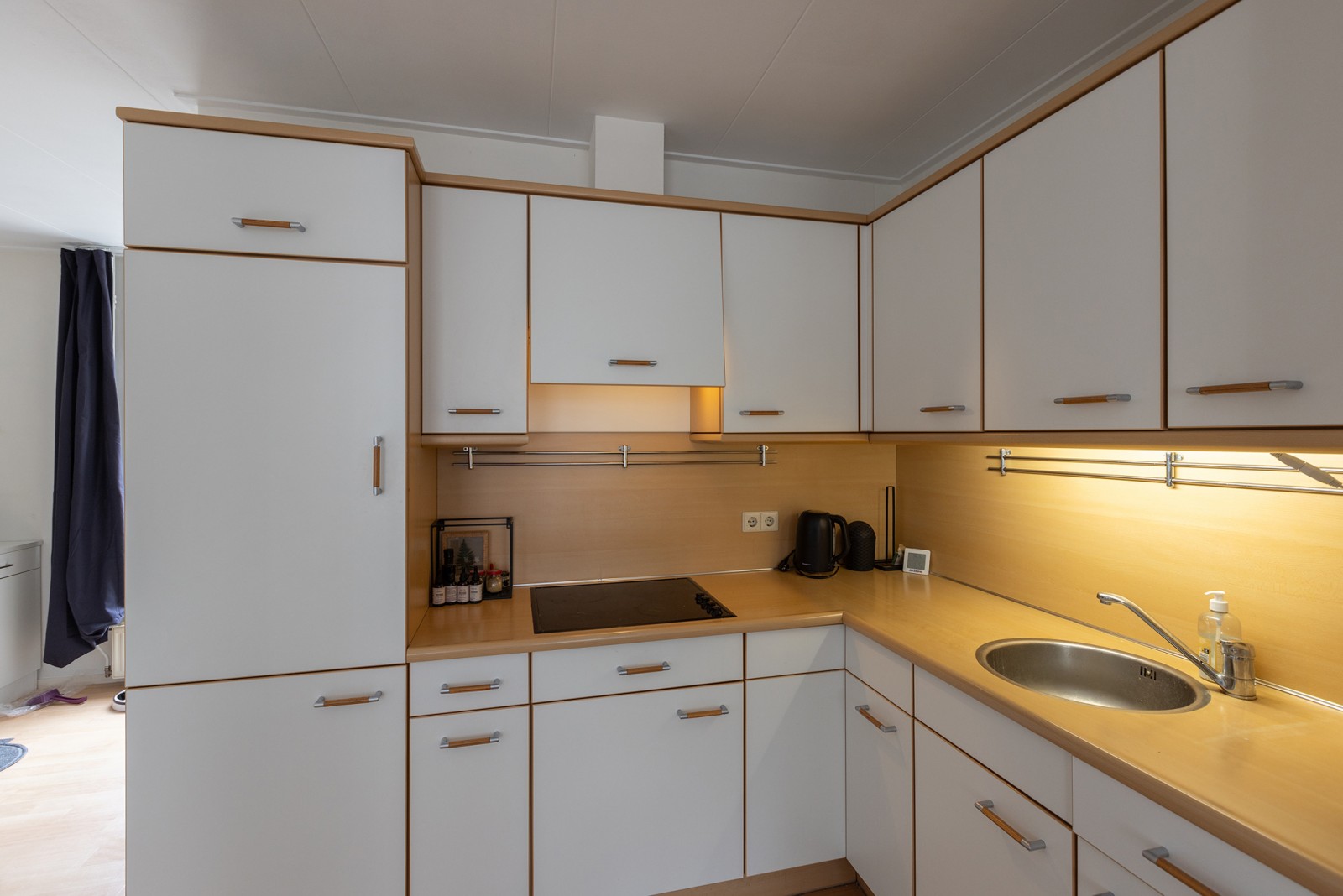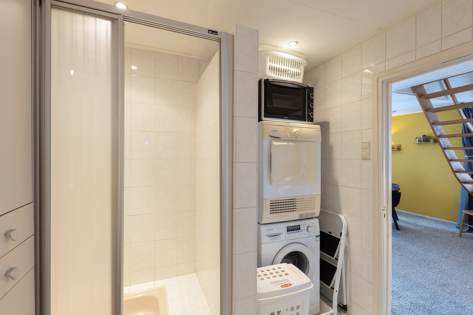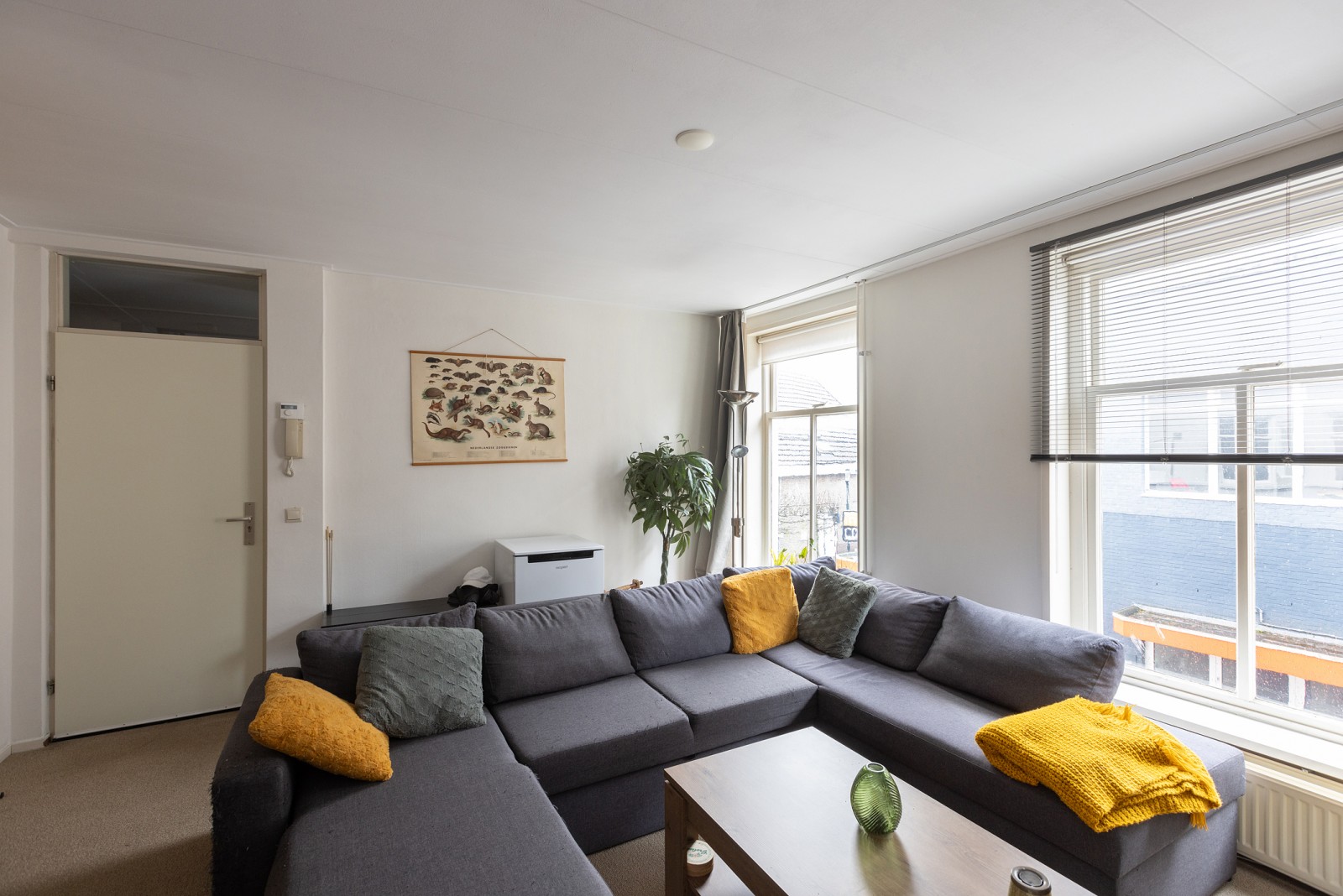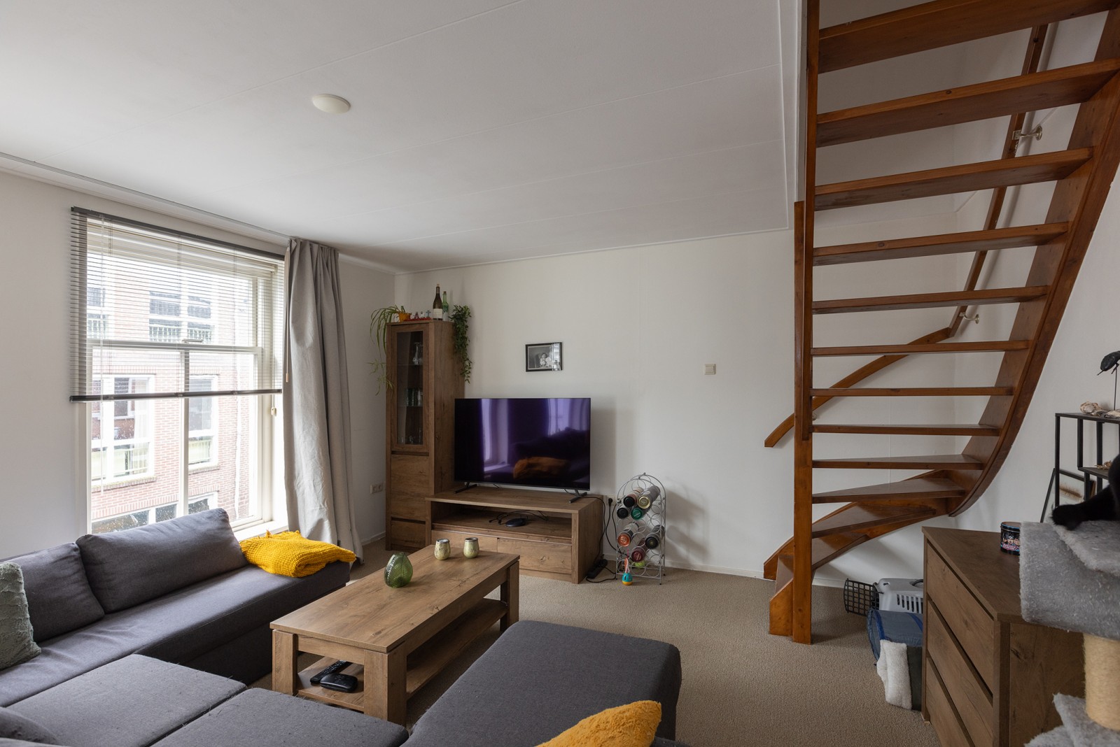 Woonkamer met uitzicht over het stadscentrum en trapopgang. Openkeuken met inbouwkeuken voorzien van een kookplaat, afzuigkap en koelkast. Ruime badkamer met wastafel, douche, ligbad, toilet en aansluiting voor de wasmachine/wasdroger. Middels de trapopgang in de woonkamer is de ruime slaapkamer te bereiken. Notenboomstraat 50b