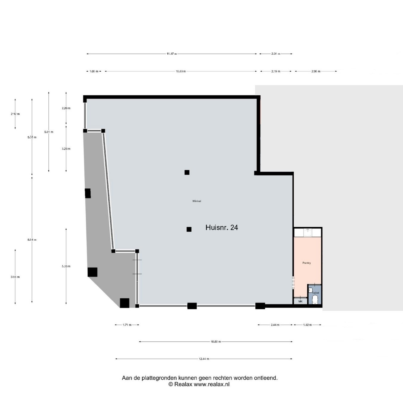 Beltrumsestraat 24 (winkel) -> oppervlakte winkelruimte ca. 171 m² en de gebouwgebonden buitenruimte is ca. 23 m²;