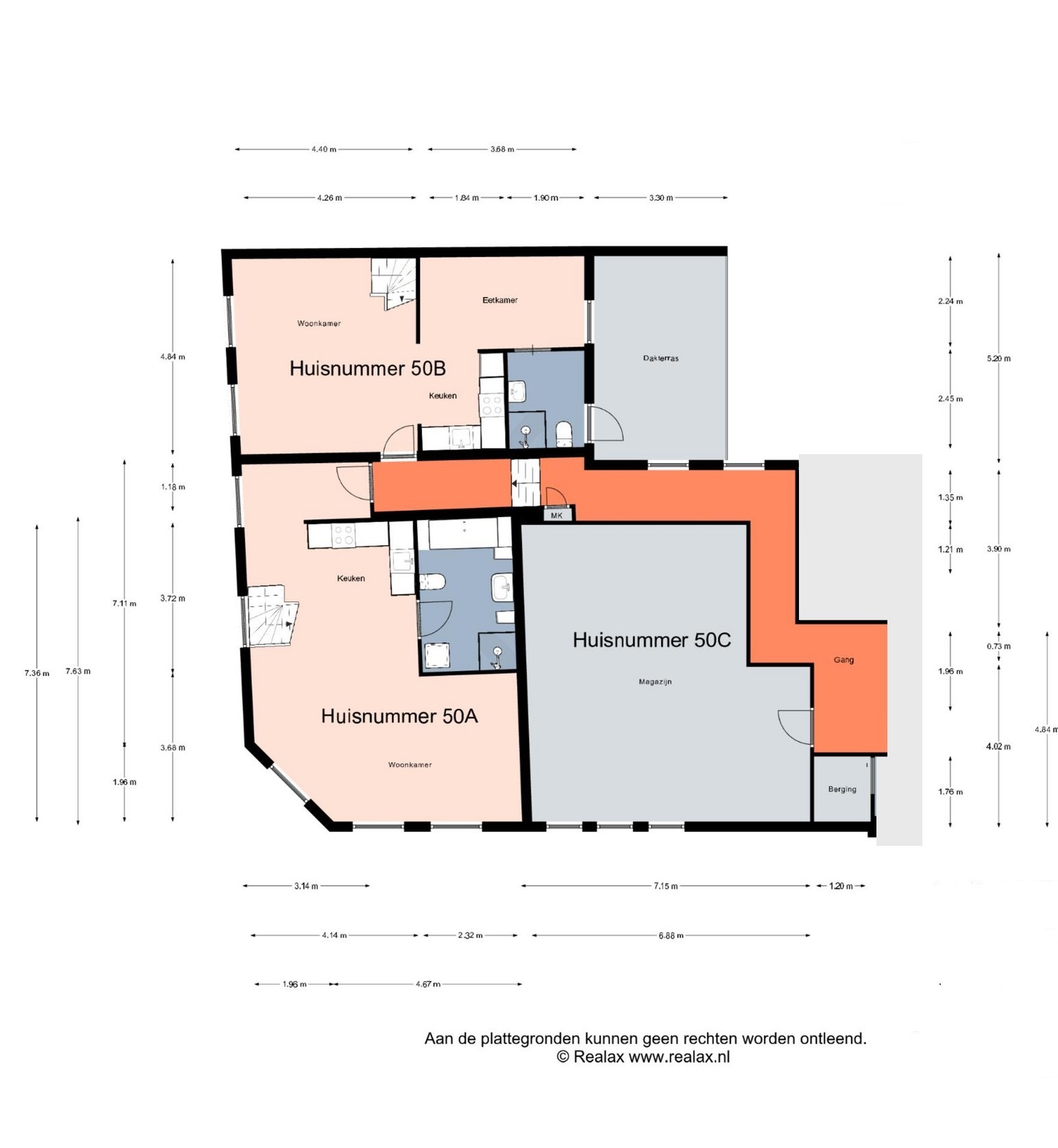 Notenboomstraat 50a (appartement) -> woonoppervlakte ca. 63 m² en de externe bergruimte is ca. 4 m²;
