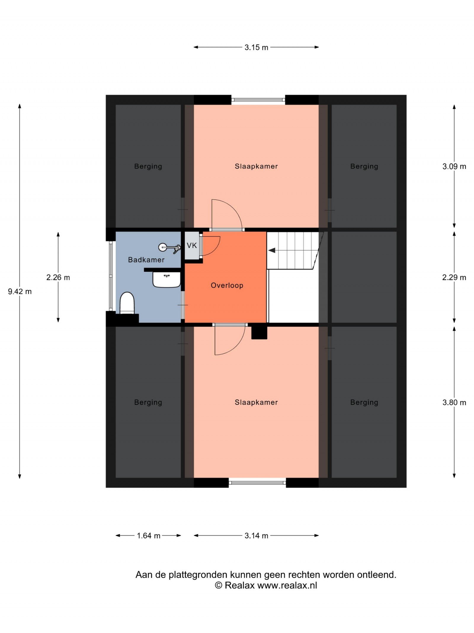 De overloop biedt toegang tot een vaste kast, twee slaapkamers en een badkamer voorzien van een douche, wastafelmeubel en toilet. De kenmerken zijn: