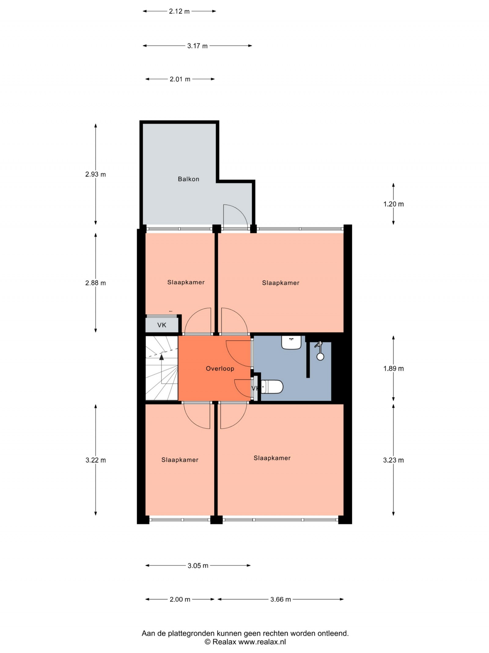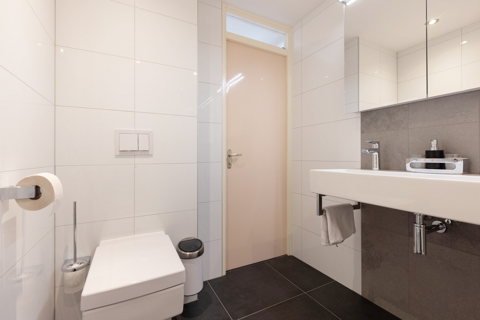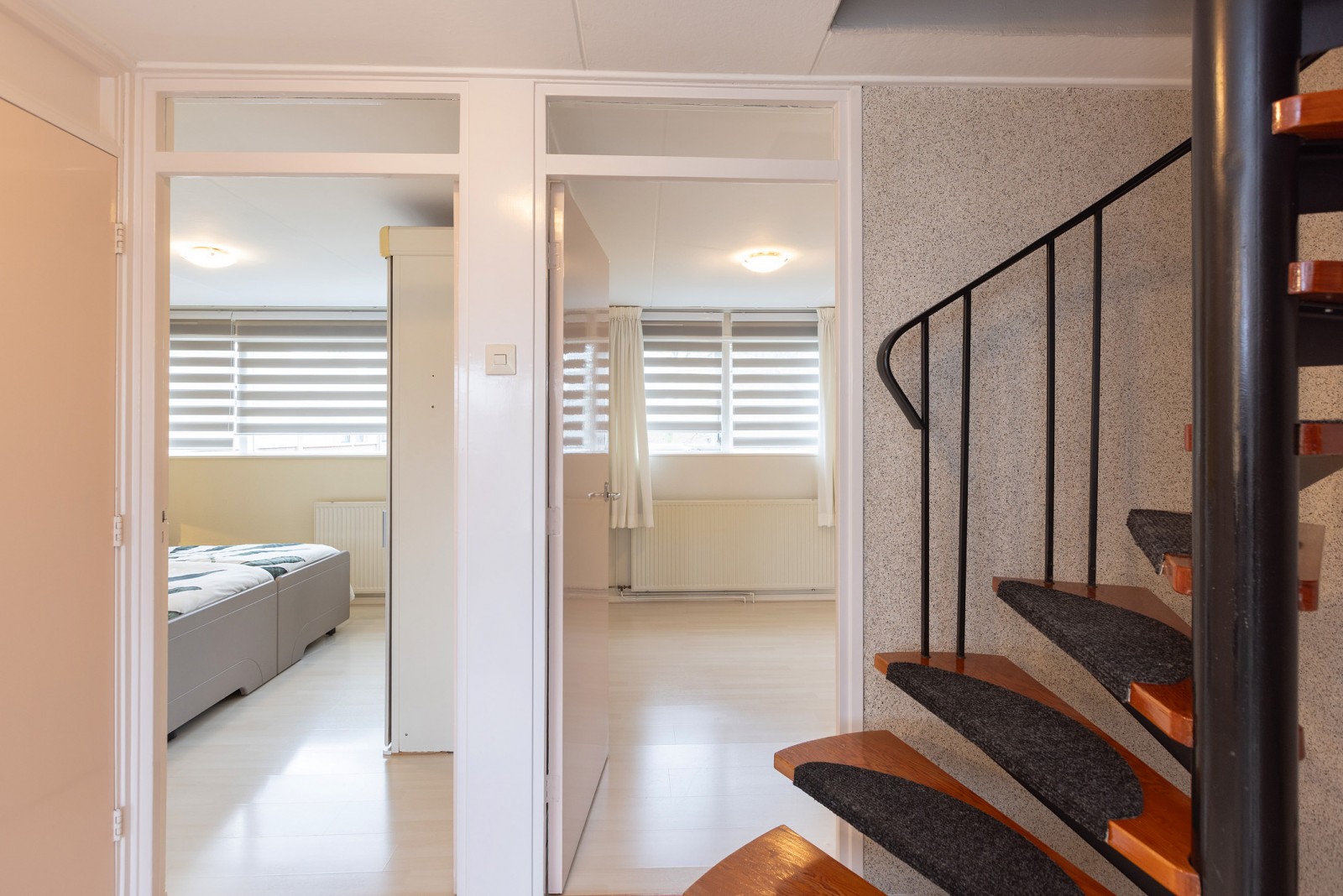 Overloop met toegang tot drie slaapkamers, waarvan één beschikt over een dakterras, en een extra slaap-/werkkamer met wasmachineaansluiting. De in 2018 vernieuwde badkamer is voorzien van een wandcloset, douche, wastafel en mechanische ventilatie.