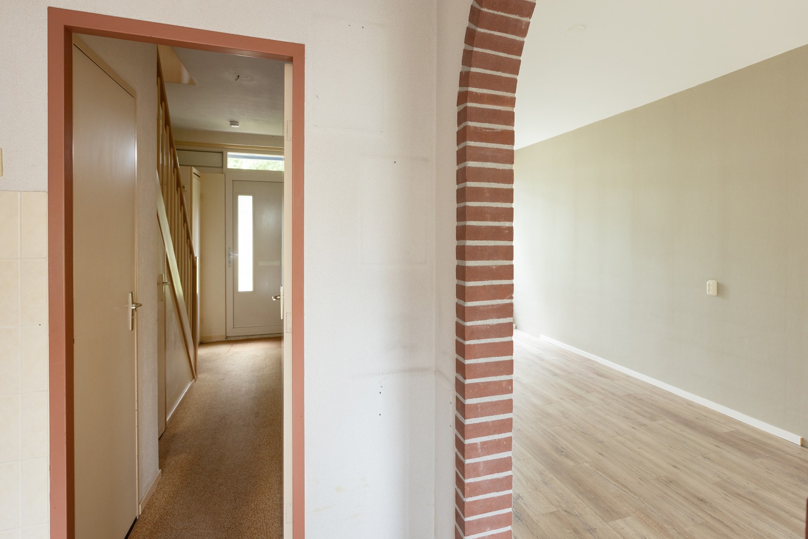 Entree/hal met trapopgang, trapkast en een toilet met fonteintje. De doorzonwoonkamer is heerlijk licht dankzij de grote raampartijen en biedt een sfeervolle leefruimte. Aan de achterzijde bevindt zich de halfopen, tuingerichte keuken, voorzien van een inbouwkeuken met een 4-pits gaskookplaat, afzuigkap, oven en een aansluiting voor de wasmachine. Vanuit de keuken is het terras bereikbaar.