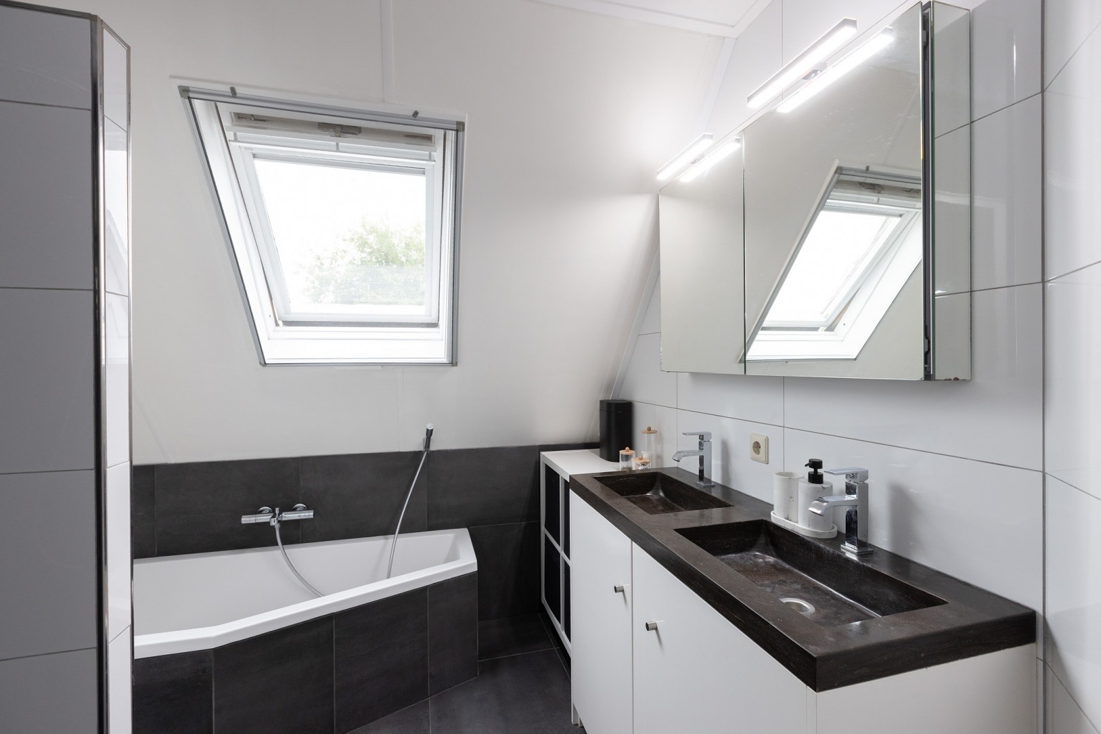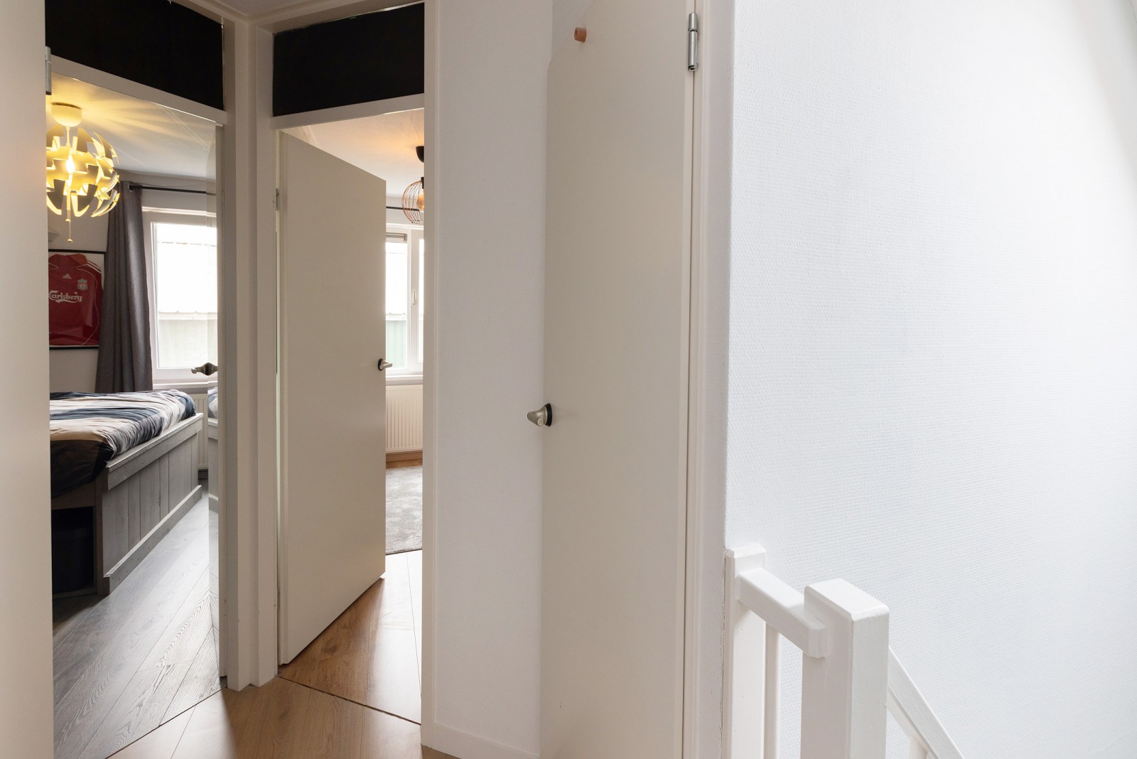 De overloop biedt toegang tot vier ruime slaapkamers. De moderne badkamer is voorzien van een ligbad, douche, een dubbele wastafel met meubel en vloerverwarming. Daarnaast is er een separaat toilet aanwezig op deze verdieping.