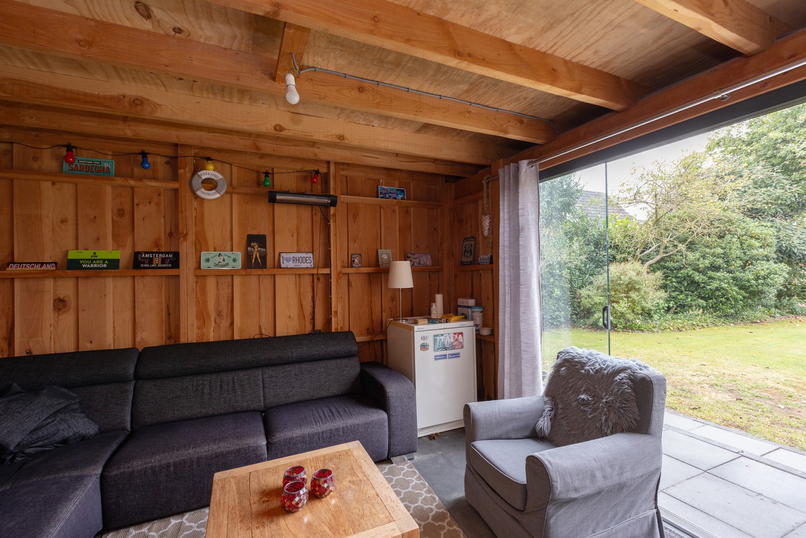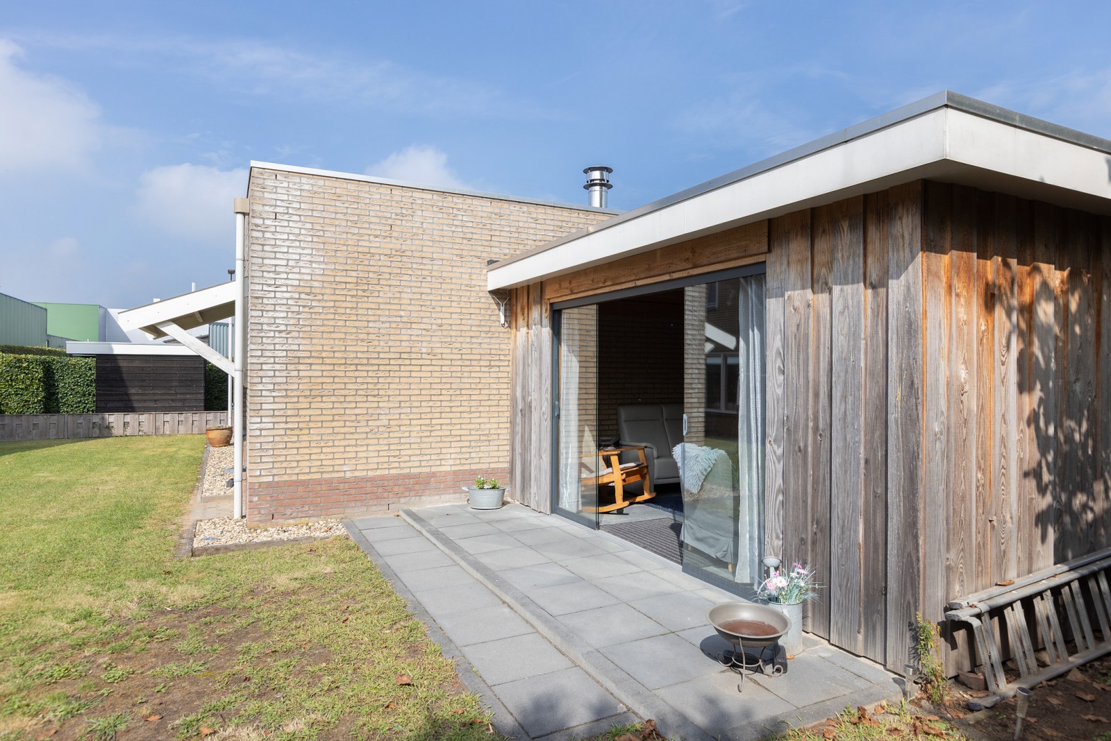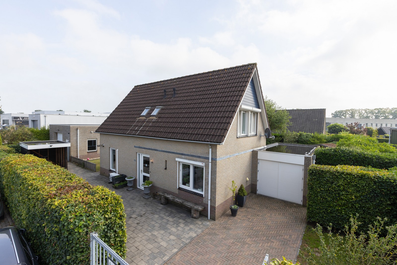 De rondom gelegen tuin is fraai aangelegd en goed onderhouden, met een royaal gazon dat volop ruimte biedt, om te genieten van buiten. In de tuin staat een stijlvol tuinhuis dat volledig afgesloten kan worden met een glazen wand, ideaal voor gezellige zomeravonden of beschutte ontspanning. Daarnaast is er een praktisch houten tuinhuis aanwezig, perfect voor het opbergen van tuingereedschap en andere spullen. Bedrijfsruimte