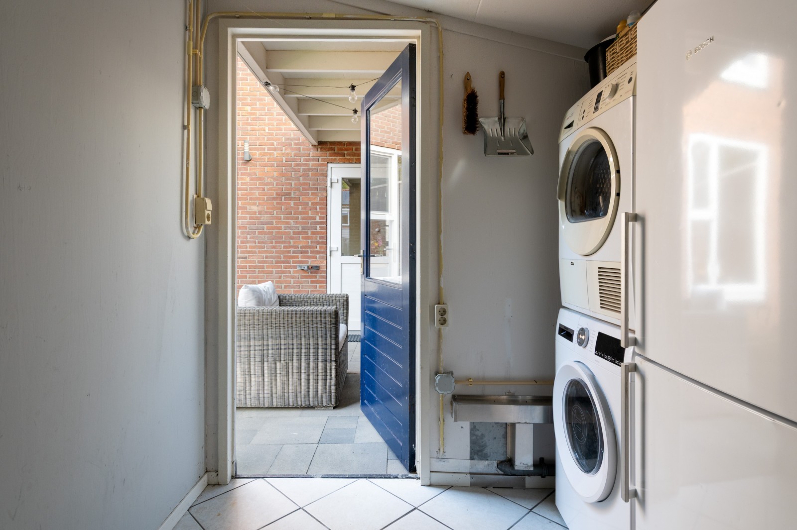 – Stenen berging met wasmachine- en drogeraansluiting, overdekt bereikbaar via de veranda.