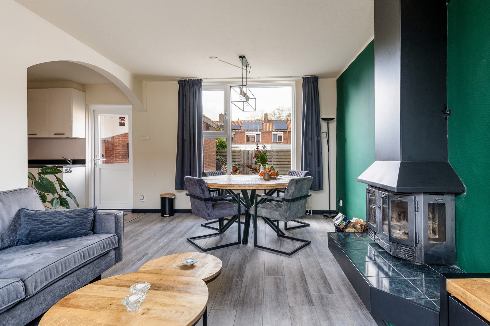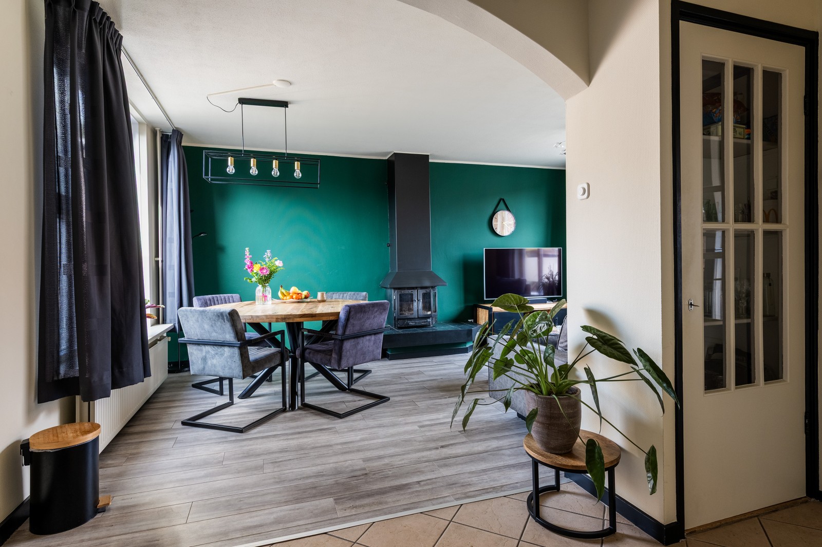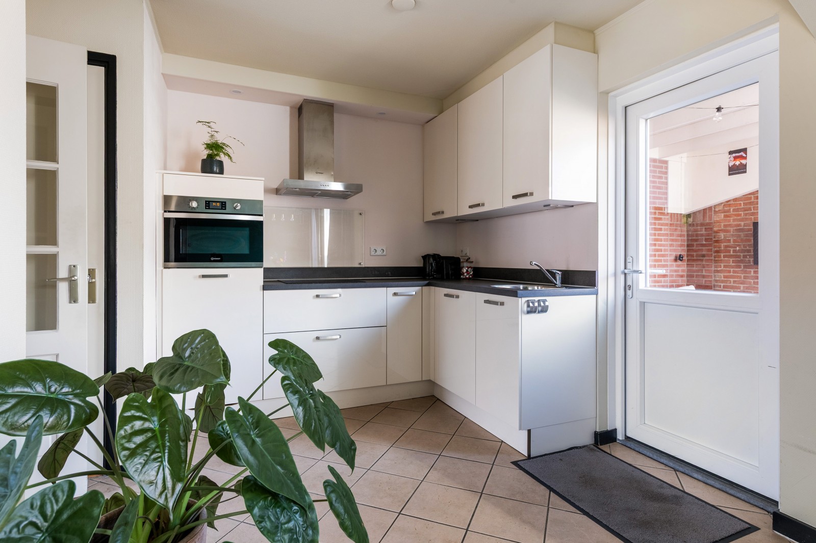 Bij binnenkomst in de hal tref je de trapopgang en het toilet met wandcloset en fonteintje. De woonkamer beschikt over een gezellige houtkachel en loopt over in de open keuken, die is voorzien van twee praktische vaste kasten en een inbouwkeuken met een koelkast, combi-oven, inductiekookplaat, afzuigkap en vaatwasser. Vanuit de keuken is er directe toegang tot de uitnodigende veranda.