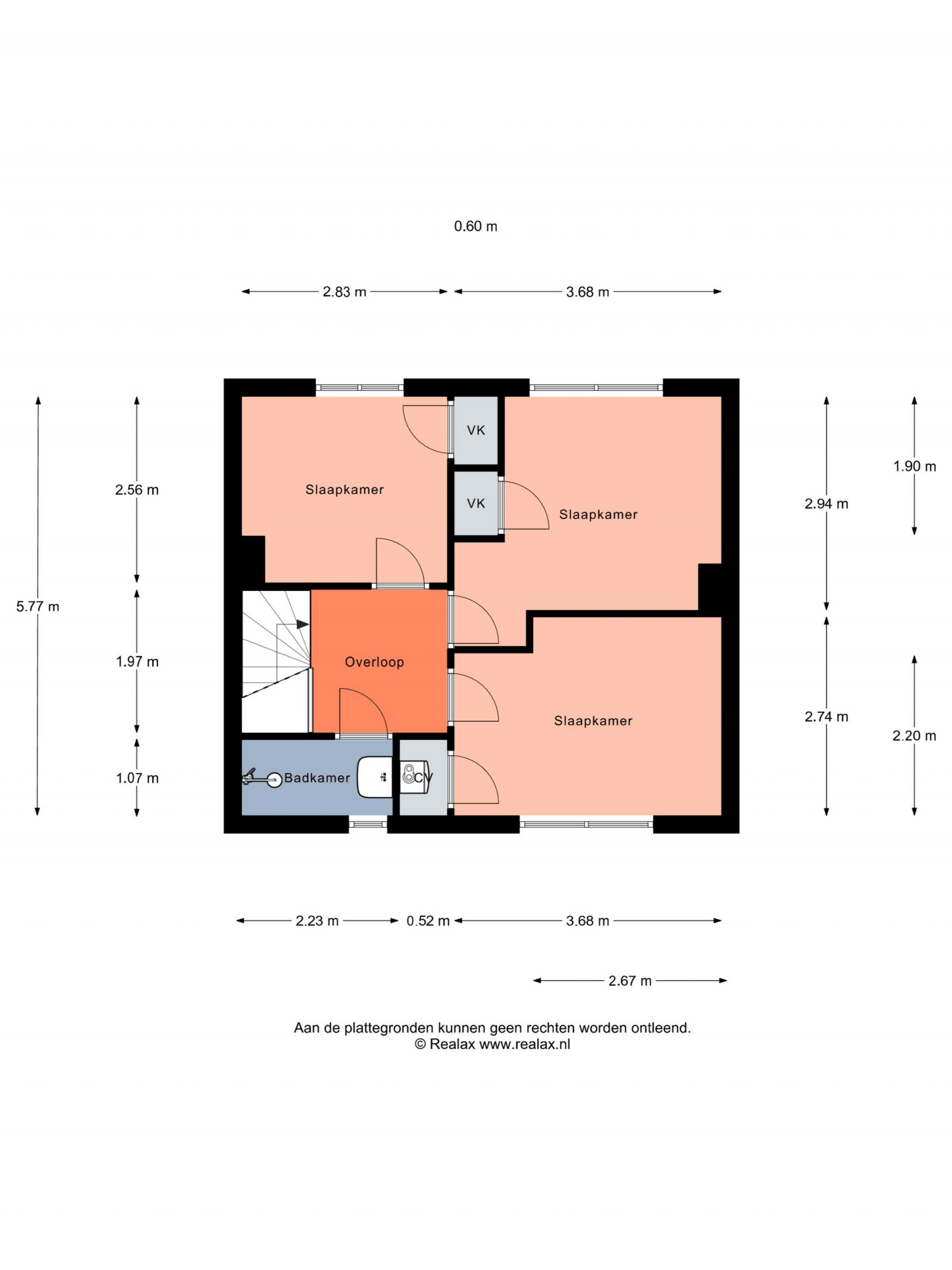 Op de verdieping bevindt zich een overloop met toegang tot drie slaapkamers, allen voorzien van vaste kasten, waarvan één tevens de CV-opstelling herbergt. De badkamer is ingericht met een douche en wastafel.