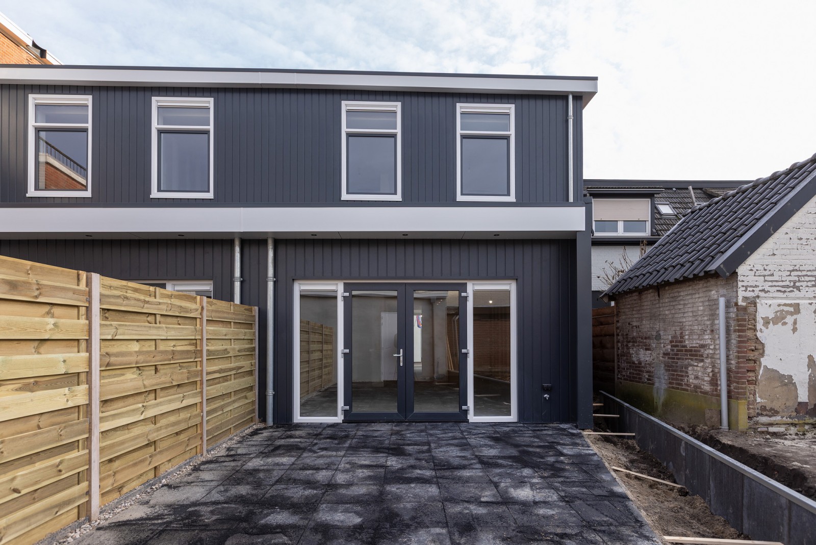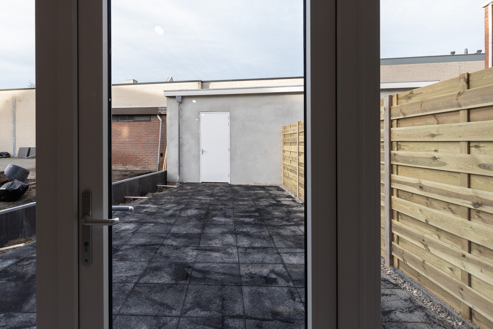 De achtertuin is grotendeels aangelegd met sierbestrating en aan één zijde voorzien van een nieuwe schutting. Daarnaast is er een stenen berging aanwezig, die via een recht van overpad achterom bereikbaar is. Bijzonderheden:
